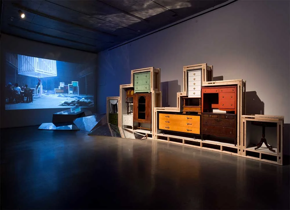 This work is an homage to the environments that the artists created as children, reinterpreting the sites of their early imaginative lives to explore what it means to combine creative worlds. From towers of stacked furniture to a dammed up creek to a treehouse that can only be accessed by a long climb up bedsheets, the McMillans have re-created these seminal, invented sites of their childhoods. These places and narrative play-scapes are the root of their practice. When We Didn't Touch the Ground is a re-creation of these familiar spaces of youth: that liminal moment between the intensity of a child's play and the call to dinner.