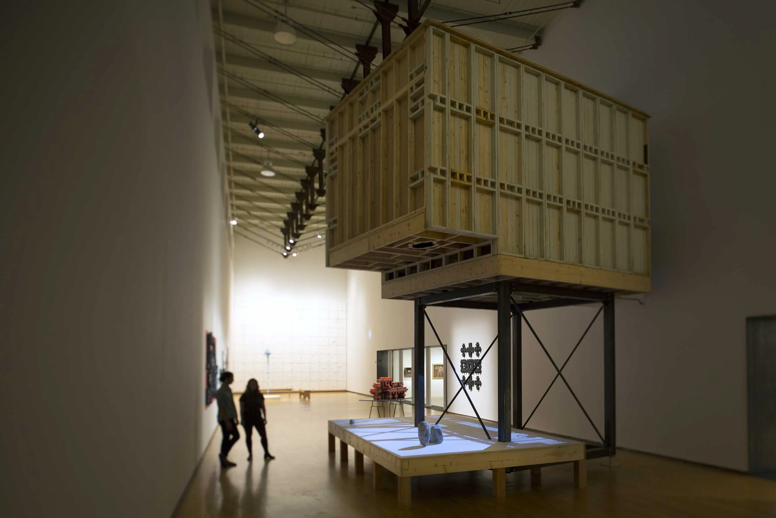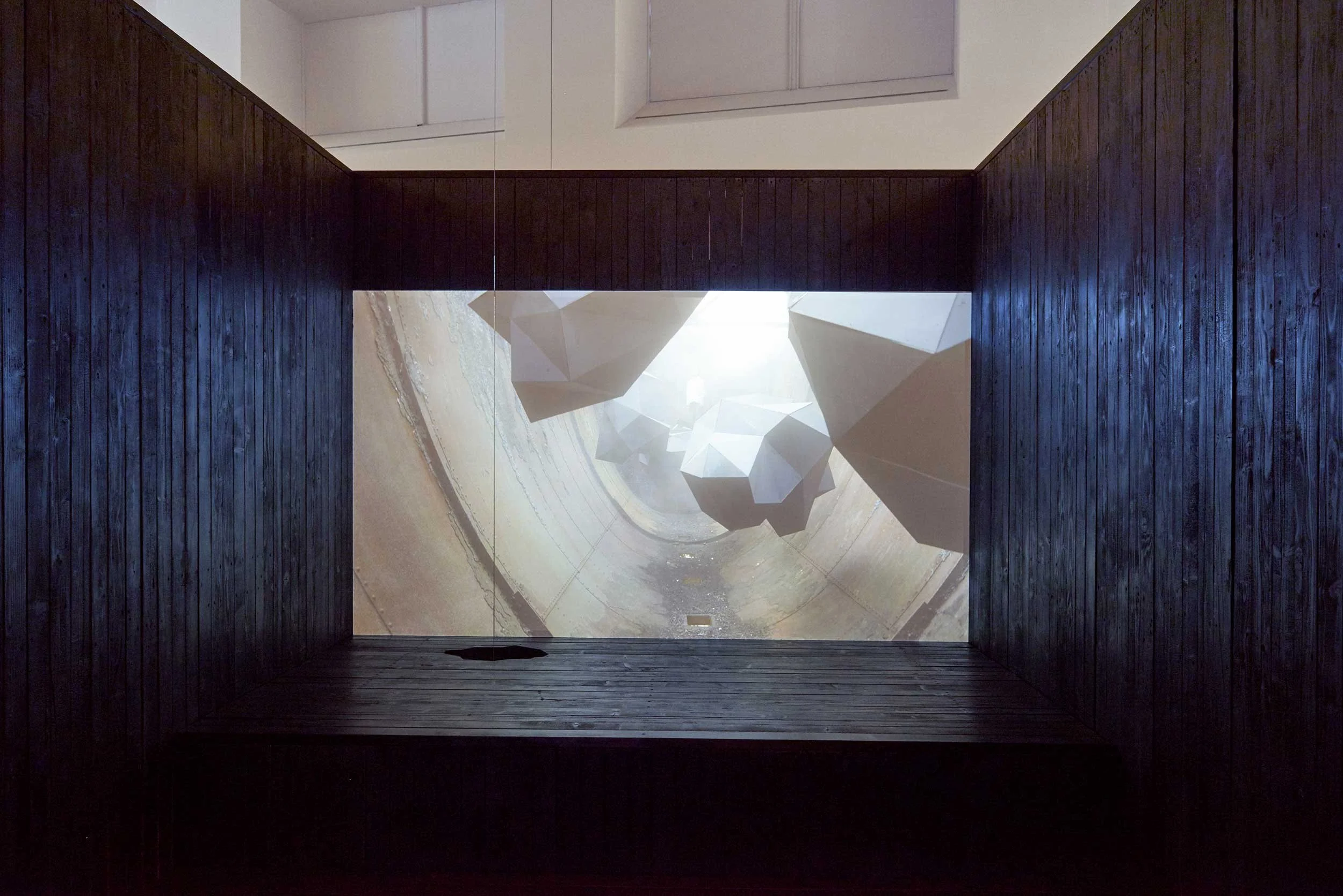 In What Distant Sky is a choreographed video and site-specific installation filmed inside the decommissioned coal-handling infrastructure of MASS MoCA’s former power plant. The camera follows a lone performer who ascends through fabricated “coal boulders,” a cliff-edge teahouse, and other constructed vignettes built within the cavernous bin, transforming an industrial ruin into a theatre of cosmic wonder. The project developed from the McMillans’ 2012–2013 WaterFire residency, where they designed and publicly launched the Coal Bin Project, a procession of nine monumental faux-coal sculptures that later informed the MASS MoCA set and installation.